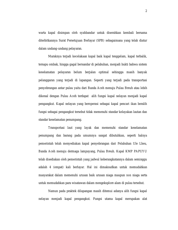 Baca Juga : PERANAN KANTOR KESYAHBANDARAN DAN OTORITAS PELABUHAN TERHADAP KESELAMATAN KAPAL PENUMPANG (SUATU PENELITIAN DI KOTA BANDA ACEH) (Riko Sukrevi Ibrahim, 2018)
