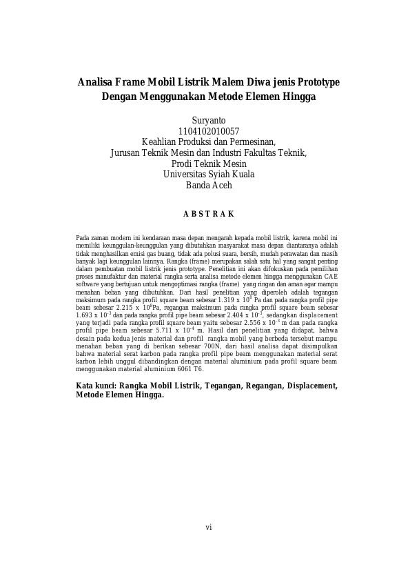 Baca Juga : ANALISA FRAME MOBIL LISTRIK MALEM DIWA JENIS PROTOTYPE DENGAN MENGGUNAKAN METODE ELEMEN HINGGA (Suryanto, 2017)