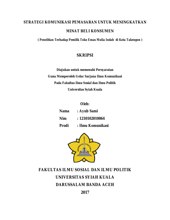 Ayub Sami, STRATEGI KOMUNIKASI PEMASARAN UNTUK MENINGKATKAN MINAT BELI KONSUMEN ( PENELITIAN TERHADAP PEMILIK TOKO EMAS MULIA INDAH DI KOTA TAKENGON ). Banda Aceh FAKULTAS ILMU SOSIAL DAN ILMU POLITIK UNIVERSITAS SYIAH KUALA,2017