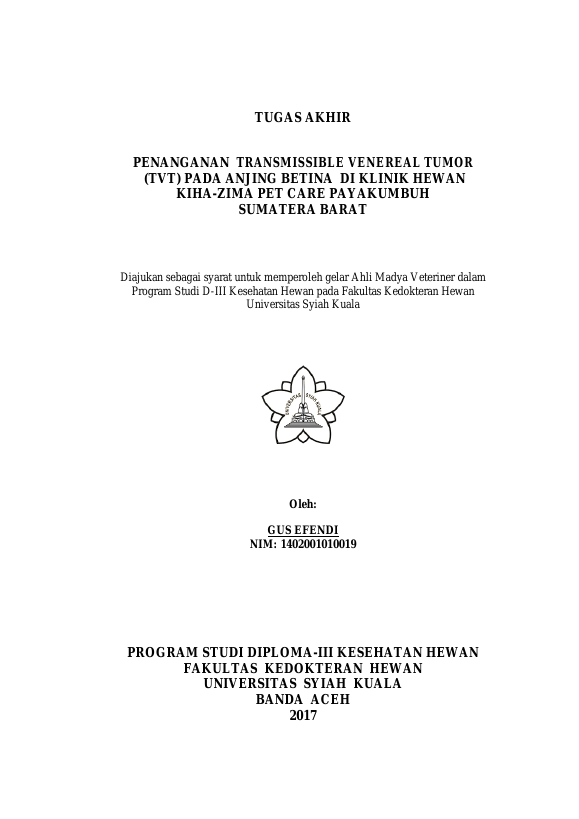Baca Juga : PREVALENSI DAN FAKTOR - FAKTOR PENULARAN PENYAKIT TRANSMISSIBLE VENEREAL TUMOR (TVT) PADA ANJING PEMBURU DI KOTA PAYAKUMBUH (FADLI SAPUTRA, 2016)
