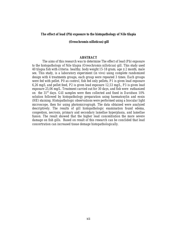 Baca Juga : PENGARUH PAPARAN TIMBAL (PB) TERHADAP HISTOPATOLOGIS USUS IKAN NILA (OREOCHROMIS NILLOTICUS) (Rina Ismaya, 2017)