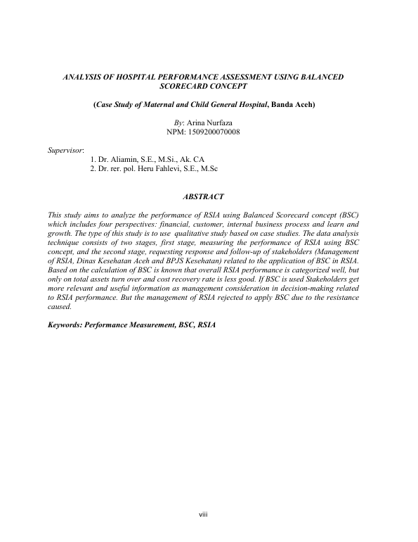 Baca Juga : ANALISA PERBANDINGAN KINERJA RUMAH SAKIT DENGAN MENGGUNAKAN PENDEKATAN BALANCED SCORECARD (STUDI KASUS PADA BADAN PELAYANAN KESEHATAN - RUMAH SAKIT UMUM DAERAH DR. ZAINOEL ABIDIN DAN RUMAH SAKIT TEUNGKU FAKINAH, BANDA ACEH) (Mukmin, 2024)