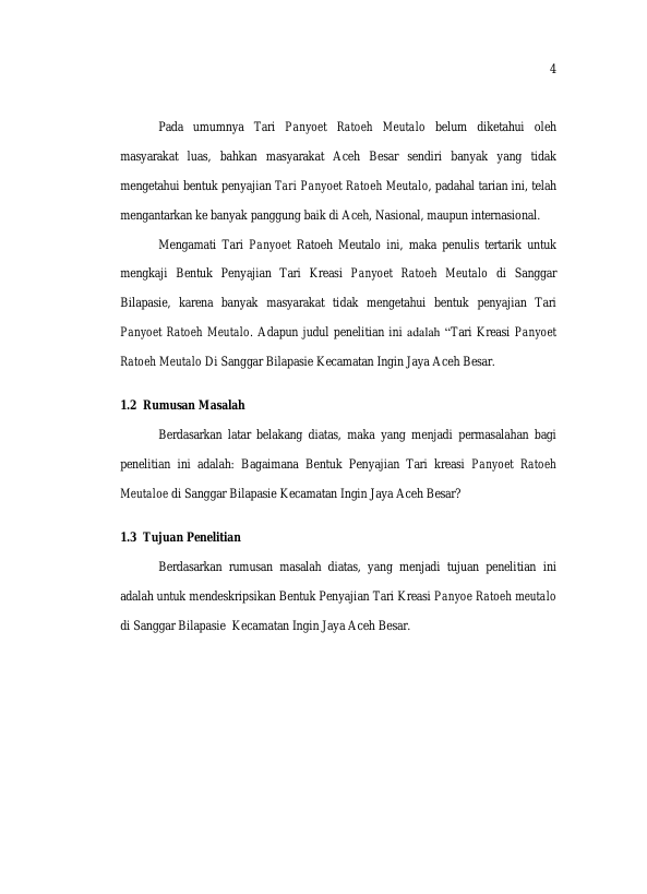 Baca Juga : BENTUK PENYAJIAN TARI KREASI RATOEH JAROE DI SANGGAR BUDAYA ACEH NUSANTARA (BUANA) BANDA ACEH (Riska Gebrina, 2015)