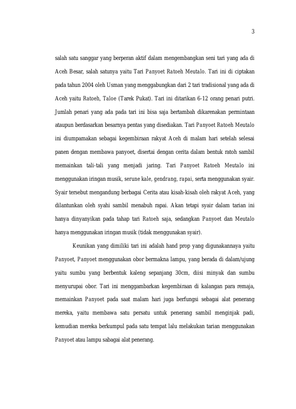 Cut Hidayani, TARI KREASI PANYOET RATOEH MEUTALO DI SANGGAR BILAPASIE KECAMATAN INGIN JAYA ACEH BESAR. Banda Aceh FAKULTAS KEGURUAN DAN ILMU PENDIDIKAN UNIVERSITAS SYIAH KUALA,2017