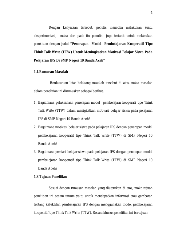 Ernawati, PENERAPAN MODEL PEMBELAJARN KOOPERATIF TIPE THINK TALK WRITE (TTW) UNTUK MENIGKATKAN MOTIVASI BELAJAR SISWA PADA PELAJARAN IPS DI SMP NEGERI 10 BANDA ACEH. Banda Aceh FAKULTAS KEGURUAN DAN ILMU PENDIDIKAN UNIVERSITAS SYIAH KUALA,2017