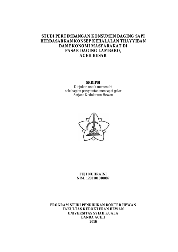 Baca Juga : STUDI PERTIMBANGAN KONSUMEN DAGING SAPI BERDASARKAN KONSEP KEHALALAN THAYYIBAN DAN EKONOMI MASYARAKAT DI PASAR DAGING LAMBARO, ACEH BESAR (fuji nuhraini, 2017)
