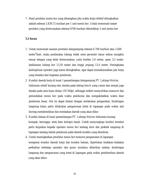 AKBAR MAULANA, STUDI KINERJA MESIN BOR MONTABERT CPA 524 UNTUK PEMBUATAN LUBANG LEDAK DI KUARI PENAMBANGAN PT. SEMEN LAFARGE HOLCIM INDONESIA STUDI KINERJA MESIN BOR MONTABERT CPA 524 UNTUK PEMBUATAN LUBANG LEDAK DI KUARI PENAMBANGAN PT. SEMEN LAFARGE HOLCIM INDONESIA STUDI KINERJA MESIN BOR MONTABERT CPA 524 UNTUK PEMBUATAN LUBANG LEDAK DI KUARI PENAMBANGAN PT. LAFARGE HOLCIM INDONESIA. Banda Aceh FAKULTAS TEKNIK UNIVERSITAS SYIAH KUALA,2017