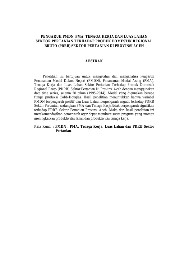 Baca Juga : ANALISIS KONTRIBUSI SUB SEKTOR PERTANIAN TERHADAP PRODUK DOMESTIK REGIONAL BRUTO (PDRB) DI PROVINSI ACEH (SILVIA PURNAMA, 2015)