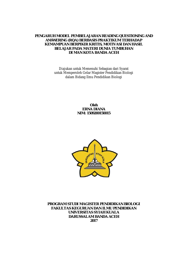 Baca Juga : PENGARUH PEMANFAATAN LINGKUNGAN SEKOLAH BERBASIS PENDEKATAN ACTIVE LEARNING TERHADAP MOTIVASI, KETERAMPILAN BERPIKIR KRITIS DAN HASIL BELAJAR PESERTA DIDIK PADA MATERI DUNIA TUMBUHAN DI SMA NEGERI 11 BANDA ACEH (Rita Astarina, 2017)
