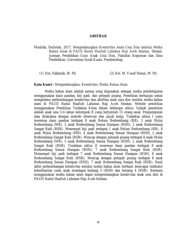 Baca Juga : MENGEMBANGKAN KREATIVITAS ANAK USIA DINI MELALUI MEDIA BAHAN BEKAS DI PAUD NURUL HIDAYAH DESA LAMPUUK KABUPATEN ACEH BESAR (Khairatul Husna, 2019)
