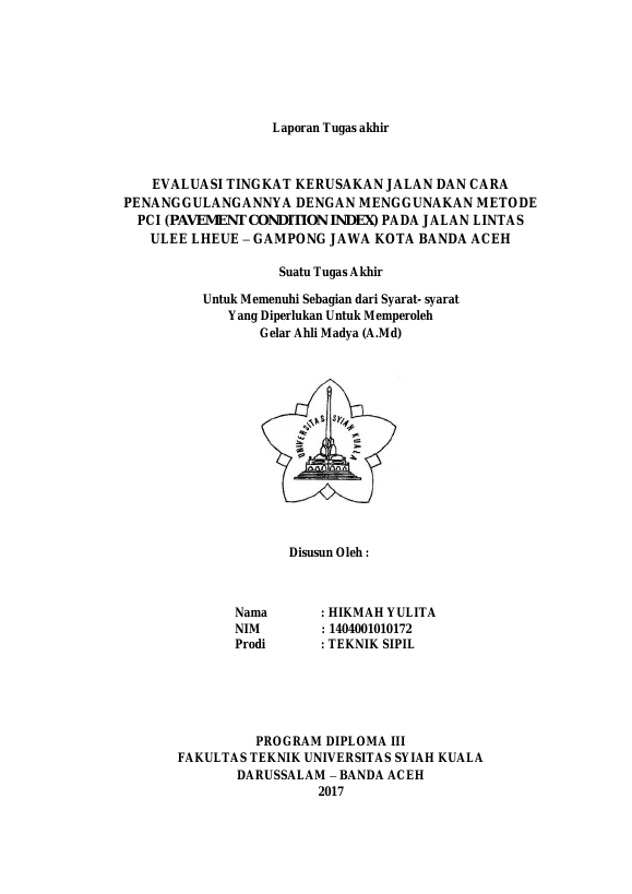 Baca Juga : PENGGUNAAN METODE SURFACE DISTRESS INDEX (SDI) DAN PAVEMENT CONDITION INDEX (PCI) UNTUK PENILAIAN KONDISI PERKERASAN JALAN (STUDI KASUS: RUAS JALAN GEUMPANG - BATAS ACEH BARAT, KABUPATEN PIDIE) (MONA MELYAR, 2021)
