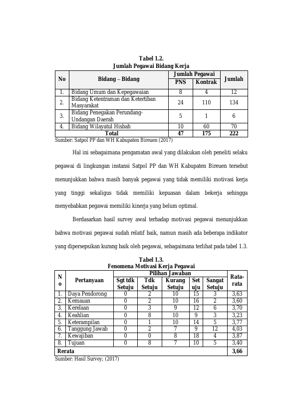 Wahyudi, PENGARUH GAYA KEPEMIMPINAN DAN LINGKUNGAN KERJA TERHADAP MOTIVASI DAN KEPUASAN KERJA SERTA DAMPAKNYA PADA KINERJA PEGAWAI (STUDI PADA SATUAN POLISI PAMONG PRAJA DAN WILAYATUL HISBAH KABUPATEN BIREUEN). Banda Aceh Universitas Syiah Kuala,2017