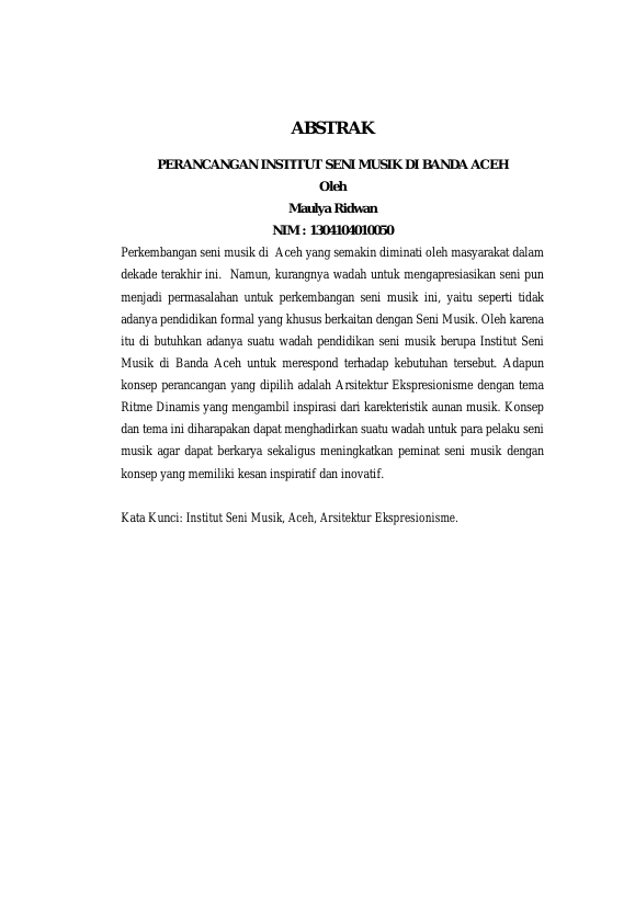 Maulya Ridwan, PERANCANGAN INSTITUT SENI MUSIK DI BANDA ACEH. Banda Aceh Universitas Syiah Kuala,2018