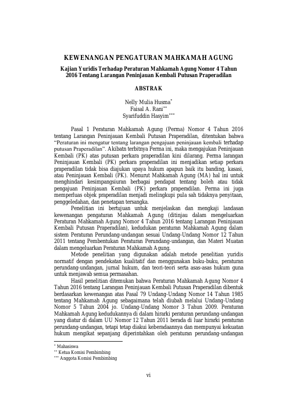 Baca Juga : KEWENANGAN PENGATURAN MAHKAMAH AGUNG KAJIAN YURIDIS TERHADAP PERATURAN MAHKAMAH AGUNG NOMOR 4 TAHUN 2016 TENTANG LARANGAN PENINJAUAN KEMBALI PUTUSAN PRAPERADILAN (Nelly Mulia Husma, 2018)