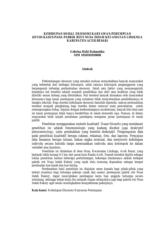 Baca Juga : KEHIDUPAN SOSIAL EKONOMI KARYAWAN PEREMPUAN (STUDI KASUS PADA PABRIK ROTI NUSA INDAH KECAMATAN LHOKNGA KABUPATEN ACEH BESAR) (Gebrina Rizki R, 2018)