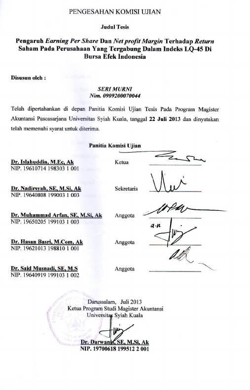 Seri Murni, PENGARUH EARNING PER SHARE DAN NET PROFIT MARGIN TERHADAP RETURN SAHAM PADA PERUSAHAAN YANG TERGABUNG DALAM INDEKS LQ-45 DI BURSA EFEK INDONESIA. Banda Aceh Fakultas Pasca Sarjana,2013