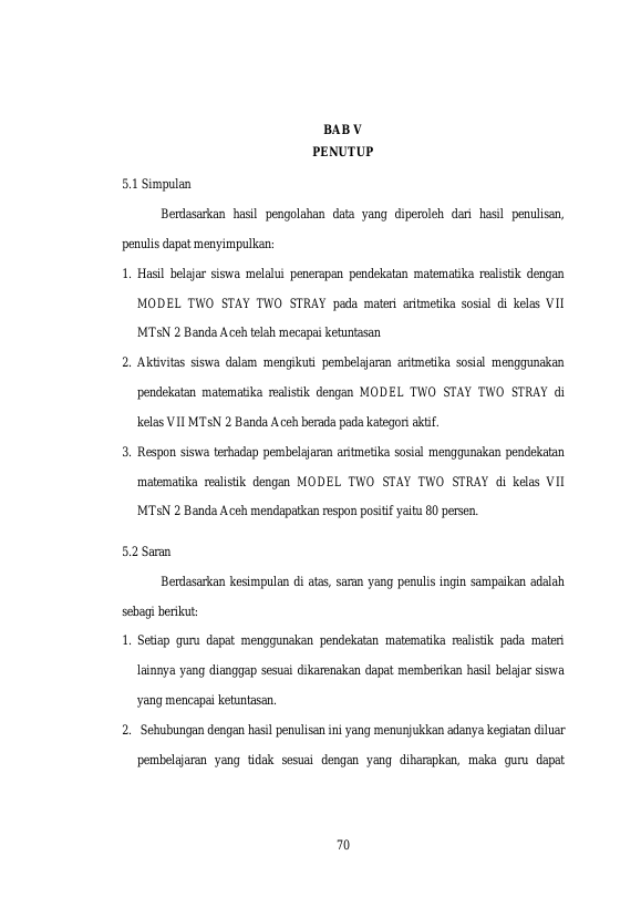 Raina Safprihartiwi, HASIL BELAJAR SISWA MELALUI PENERAPAN PENDEKATAN MATEMATIKA REALISTIK DENGAN MODEL TWO STAY TWO STRAY PADA MATERI ARITMETIKA SOSIAL DI KELAS VII MTSN 2 BANDA ACEH HASIL BELAJAR SISWA MELALUI PENERAPAN PENDEKATAN MATEMATIKA REALISTIK DENGAN MODEL TWO STAY TWO STRAY PADA MATERI ARITMETIKA SOSIAL DI KELAS VII MTSN 2 BANDA ACEH. Banda Aceh Universitas Syiah Kuala,2018