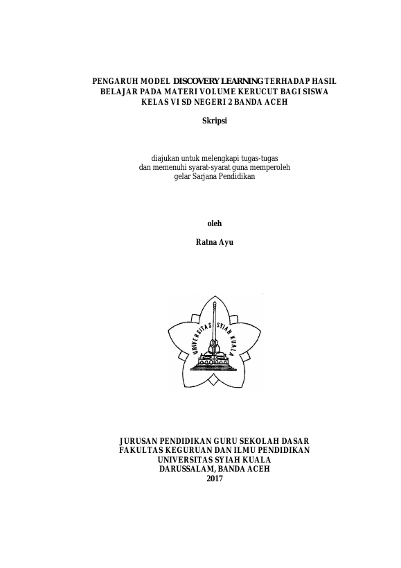RATNA AYU, PENGARUH MODEL DISCOVERY LEARNING TERHADAP HASIL BELAJAR PADA MATERI VOLUME KERUCUT BAGI SISWA KELAS VI SD NEGERI 2 BANDA ACEH. Banda Aceh Universitas Syiah Kuala,2018