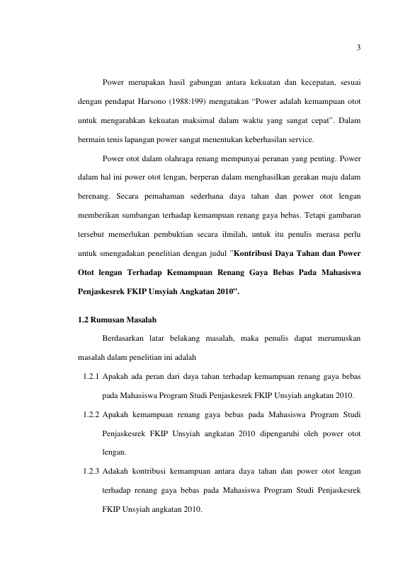 Emil Khaira, KONTRIBUSI DAYA TAHAN DAN POWER OTOT LENGAN TERHADAP KEMAMPUAN RENANG GAYA BEBAS PADA MAHASISWA PENJASKESREK FKIP UNSYIAH ANGKATAN 2010. Banda Aceh Fakultas Keguruan dan Ilmu Pendidikan,2014