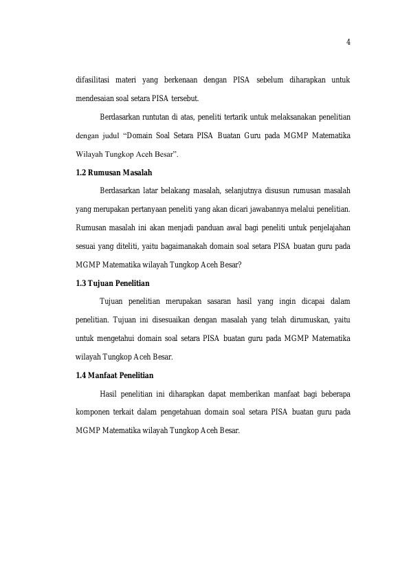 Baca Juga : KEMAMPUAN MENYELESAIKAN SOAL SETARA PISA DI KELAS IX MTSN MODEL BANDA ACEH. (Muhammad Hidayat, 2017)