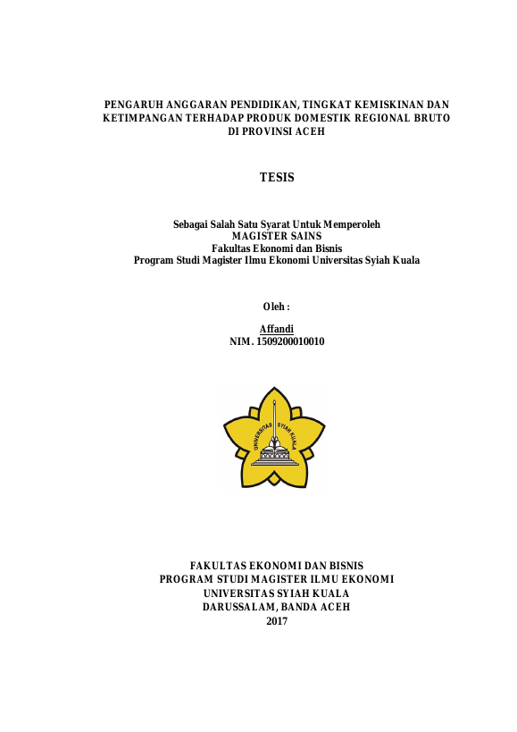 Baca Juga : PENGARUH ANGGARAN PENDIDIKAN, TINGKAT KEMISKINAN DAN KETIMPANGAN TERHADAP PRODUK DOMESTIK REGIONAL BRUTO DI PROVINSI ACEH (AFFANDI, 2018)