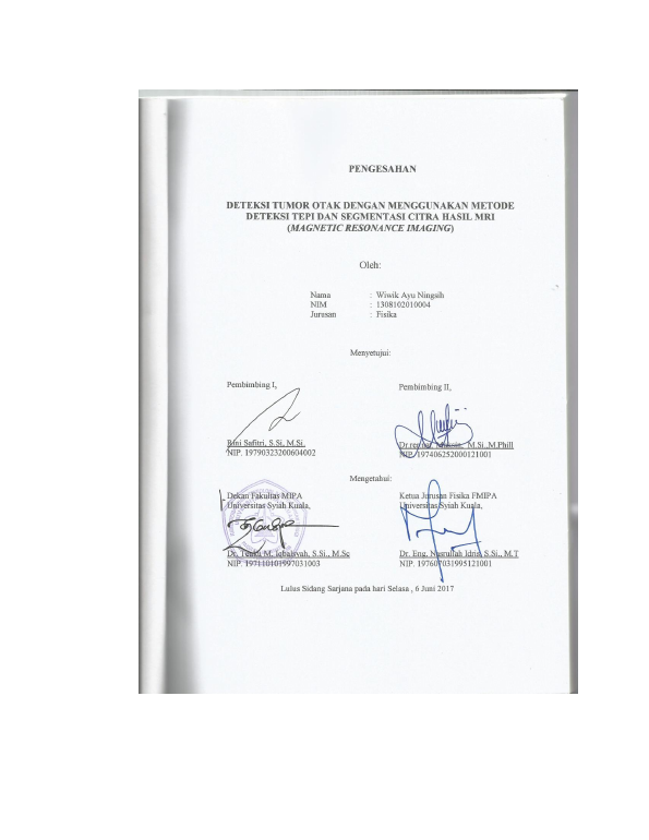 Wiwik Ayu Ningsih, DETEKSI TUMOR OTAK DENGAN MENGGUNAKAN METODE DETEKSI TEPI DAN SEGMENTASI CITRA HASIL MRI (MAGNETIC RESONANCE IMAGING). Banda Aceh Universitas Syiah Kuala,2018