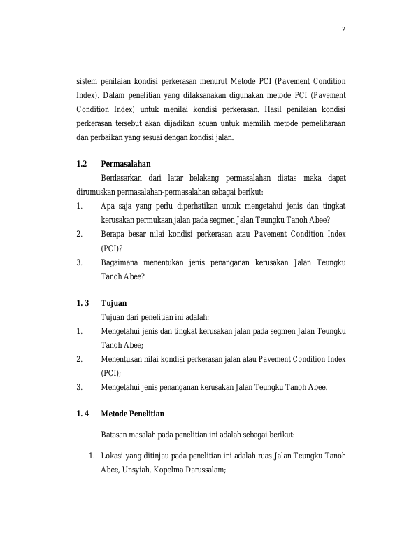 Baca Juga : EVALUASI KERUSAKAN JALAN DENGAN MENGGUNAKAN METODE PCI (PAVEMENT CONDITION INDEX) (STUDI KASUS JALAN TENGKU CHIK BA KURMA, KABUPATEN ACEH BESAR) (Abdi Azizul Hakim, 2017)
