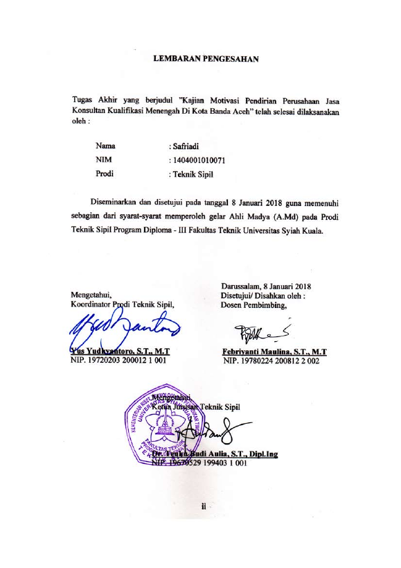 Baca Juga : KAJIAN MOTIVASI PENDIRIAN PERUSAHAAN JASA KONTRAKTOR KUALIFIKASI KECIL DI KOTA BANDA ACEH (Saryulis, 2018)