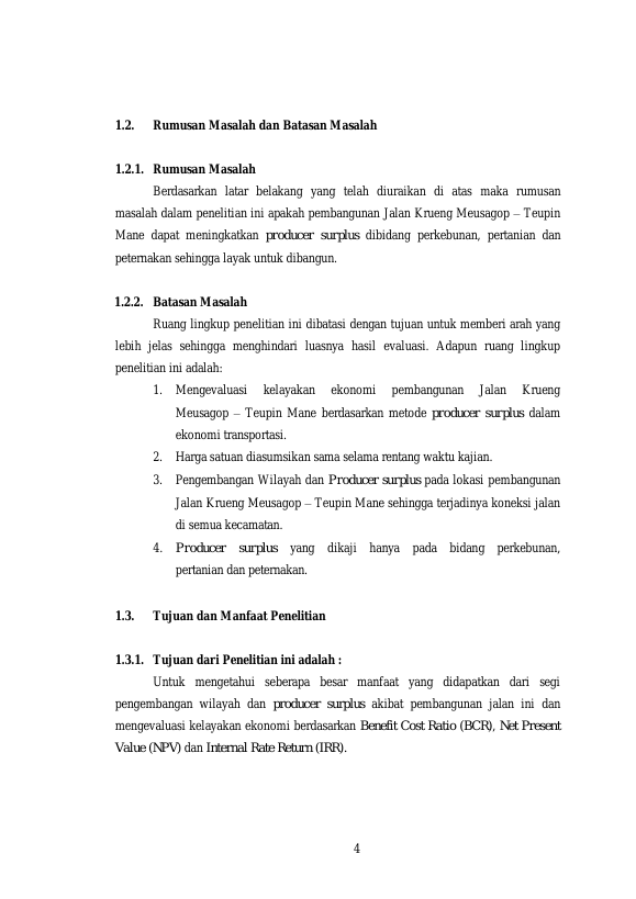 MARWAN, KELAYAKAN EKONOMI RENCANA PEMBANGUNAN JALAN KRUENG MEUSAGOP – TEUPIN MANE DARI ASPEK PRODUCER SURPLUS. Banda Aceh Program Studi Magister Teknik Sipil Universitas Syiah Kuala,2018