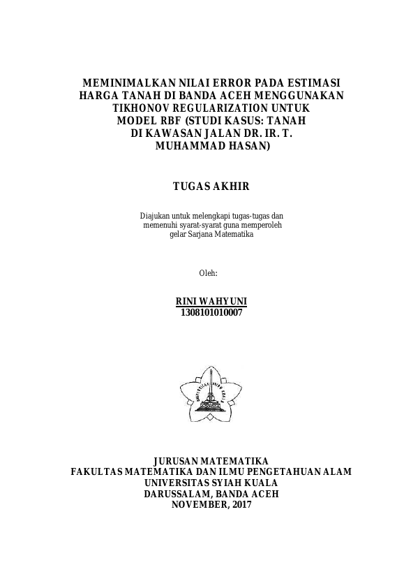Baca Juga : ESTIMASI HARGA TANAH MENGGUNAKAN RADIAL BASIS FUNCTION (RBF)(STUDI KASUS: TANAH DI KAWASAN JALAN DR. IR. T. MUHAMMAD HASAN) (Husna, 2016)