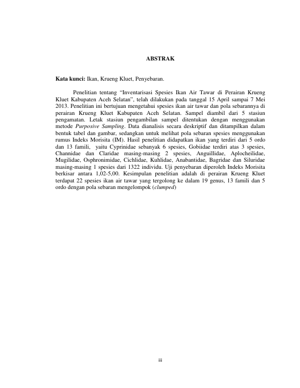Baca Juga : KELIMPAHAN DAN KEANEKARAGAMAN JENIS-JENIS IKAN DI PERAIRAN SUNGAI KLUET KABUPATEN ACEH SELATAN (Mardianti, 2017)