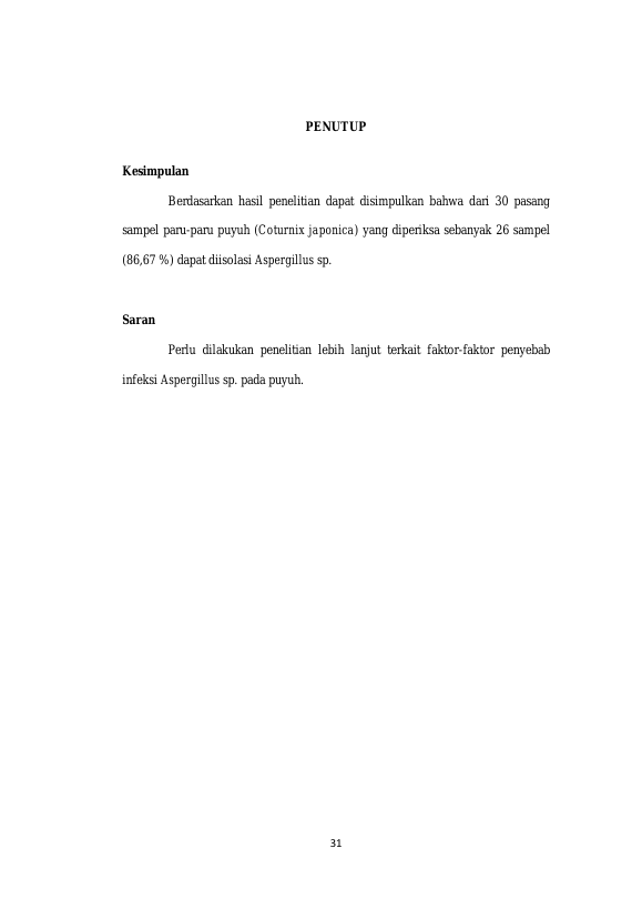 NATASHA, ASPERGILLOSIS PADA PUYUH (COTURNIX JAPONICA). Banda Aceh Universitas Syiah Kuala,2018