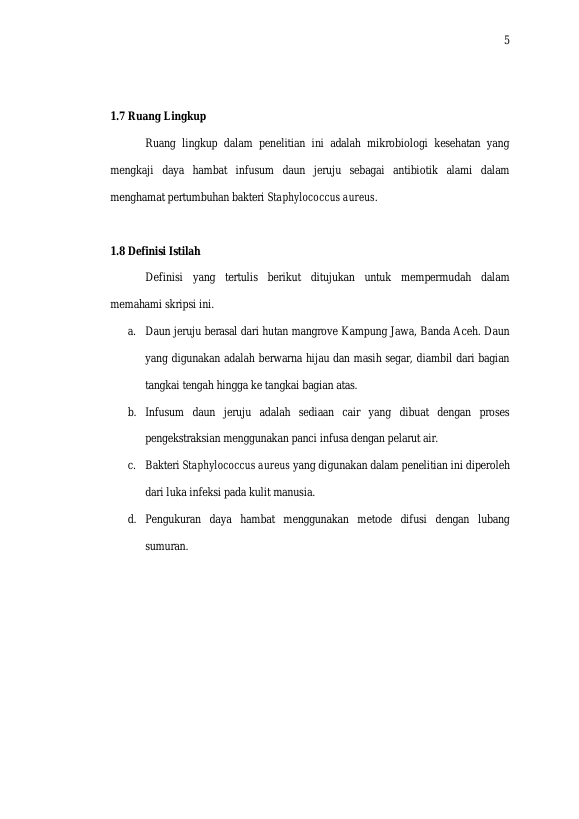 Raudhah Saputri, UJI DAYA HAMBAT INFUSUM DAUN JERUJU (ACANTHUS ILICIFOLIUS) TERHADAP STAPHYLOCOCCUS AUREUS SECARA IN VITRO. Banda Aceh Universitas Syiah Kuala,2018