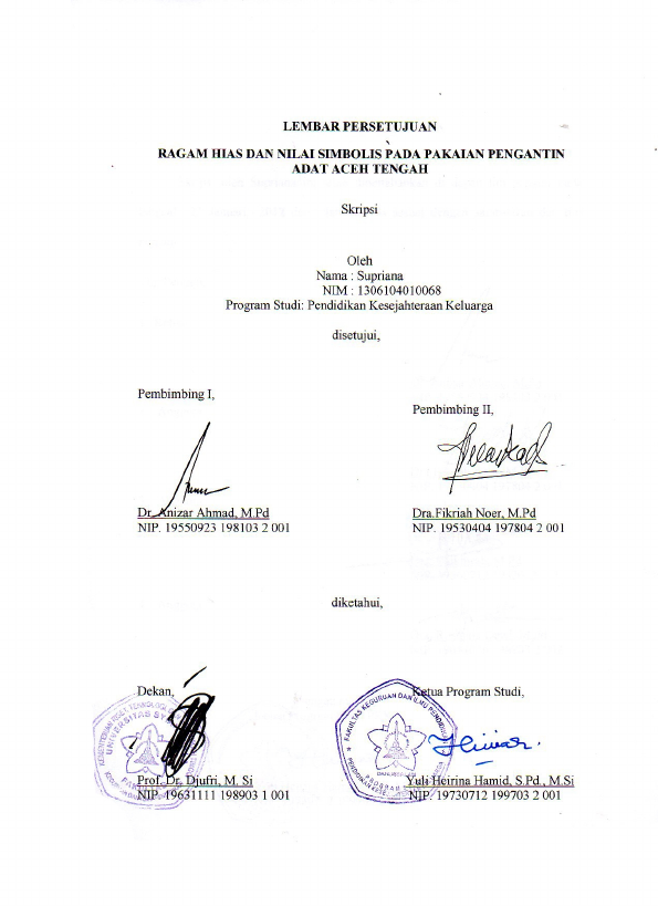 Baca Juga : NILAI SIMBOLIS RAGAM HIAS PADA PAKAIAN PENGANTIN ACEH TAMIANG (Munawwarah, 2021)