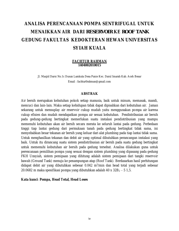 Baca Juga : ANALISA PERENCANAAN POMPA SENTRIFUGAL UNTUK MENAIKKAN AIR DARI RESERVOIR KE ROOF TANK GEDUNG FAKULTAS KEDOKTERAN HEWAN UNIVERSITAS SYIAH KUALA (Fachtur Rahman, 2018)