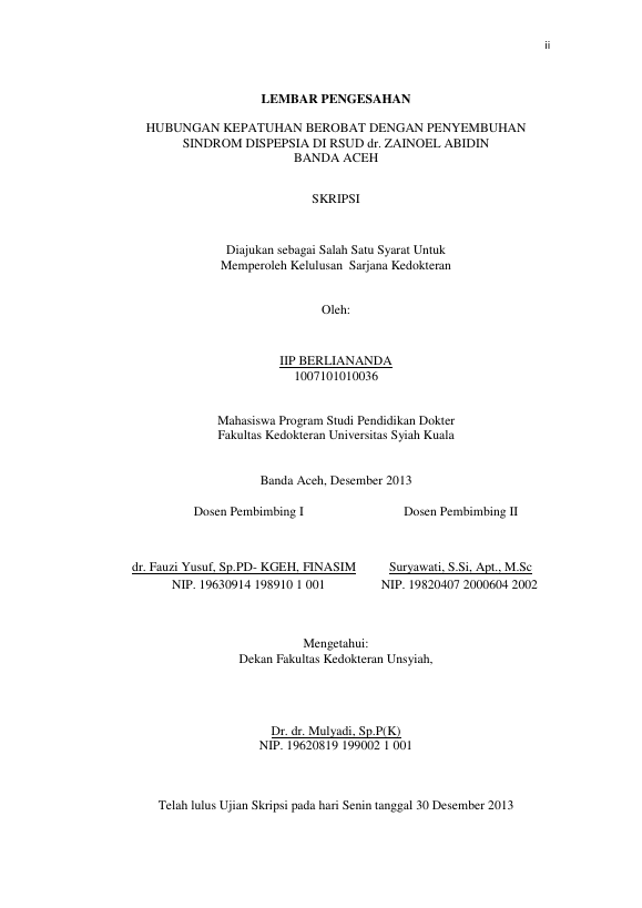 Baca Juga : HUBUNGAN KEPATUHAN BEROBAT DENGAN PENYEMBUHAN SINDROM DISPEPSIA DI RSUD DR. ZAINOEL ABIDIN BANDA ACEH (IIP BERLIANANDA, 2016)