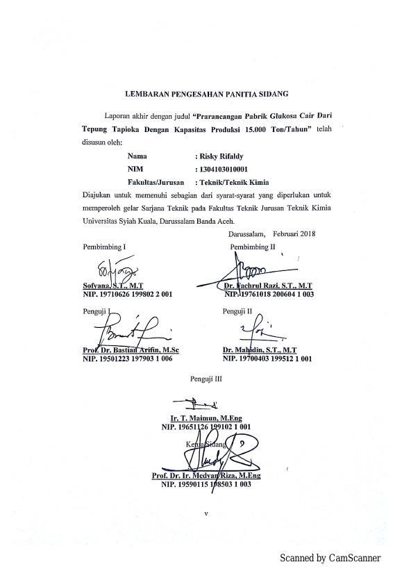 Risky Rifaldy, PRARANCANGAN PABRIK GLUKOSA CAIR DARI TEPUNG TAPIOKA DENGAN KAPASITAS PRODUKSI 15.000 TON/TAHUN. Banda Aceh Universitas Syiah Kuala,2018