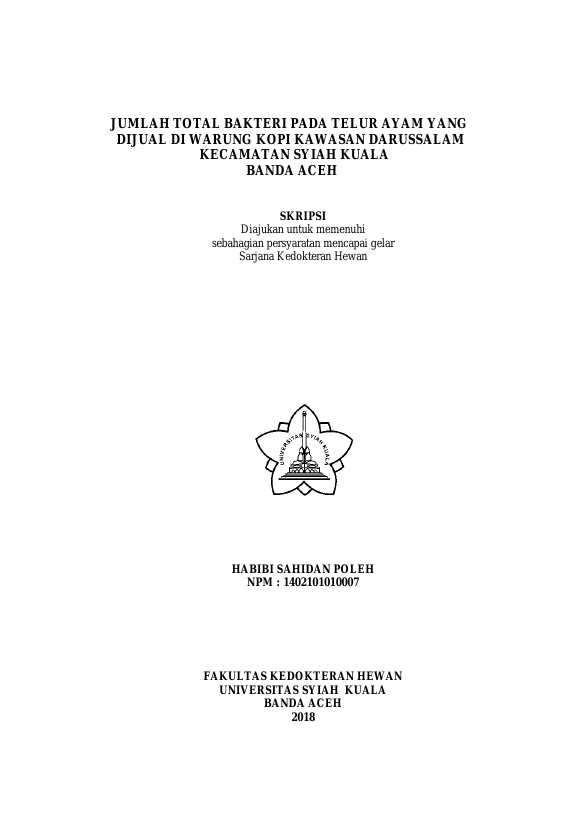 Baca Juga : JUMLAH CEMARAN ESCHERICHIA COLI PADA TELUR AYAM DARI WARUNG KOPI DI KECAMATAN SYIAH KUALA (Maikel Tio Rezky Napitupulu, 2019)