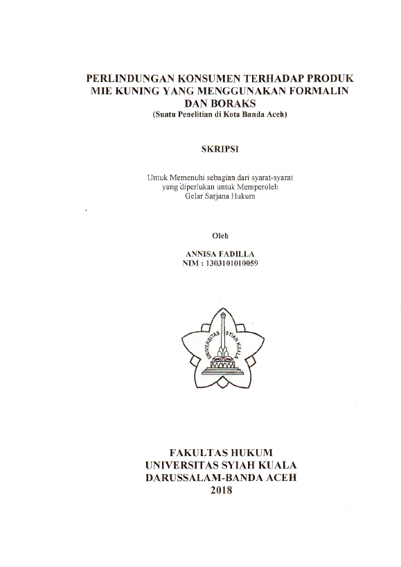 Baca Juga : PERLINDUNGAN KONSUMEN TERHADAP MAKANAN JAJANAN YANG MENGANDUNG FORMALIN DAN BORAKS(SUATU PENELITIAN DI KOTA BANDA ACEH) (Nanda Maulina Safira, 2014)