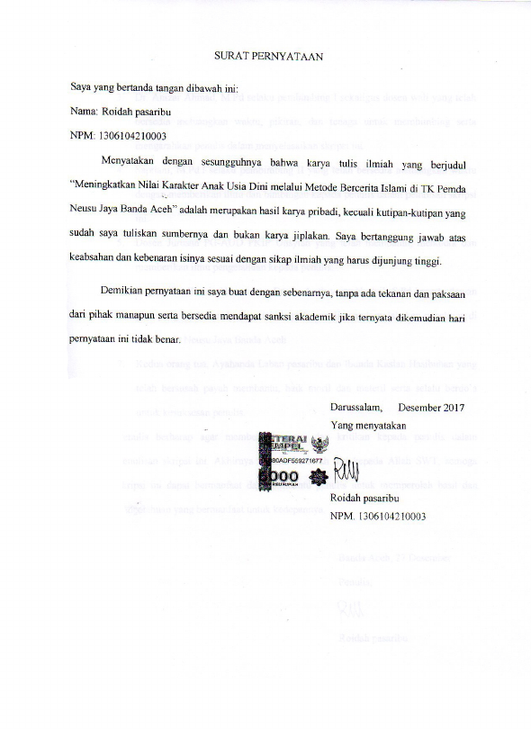 Baca Juga : PENGEMBANGAN NILAI KARAKTER ANAK MELALUI METODE BERCERITA DI TK ISLAM TERPADU AL-AZHAR BANDA ACEH (YUSRA, 2016)