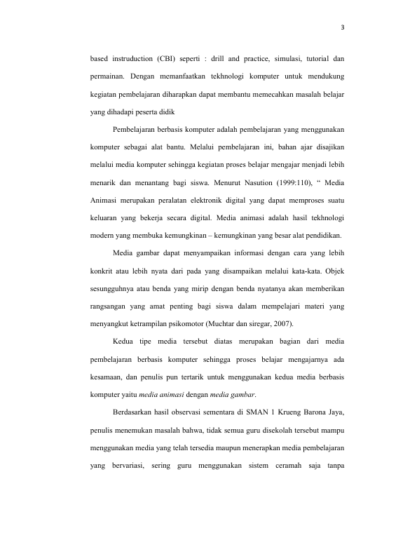 Baca Juga : PERBEDAAN HASIL BELAJAR SISWA YANG MENGGGUNAKAN MEDIA ANIMASI DAN TIDAK MENGGUNAKAN MEDIA ANIMASI PADA MATA PELAJARAN IPA DI KELAS V SD NEGERI 50 BANDA ACEH (Aulya Desanti, 2014)
