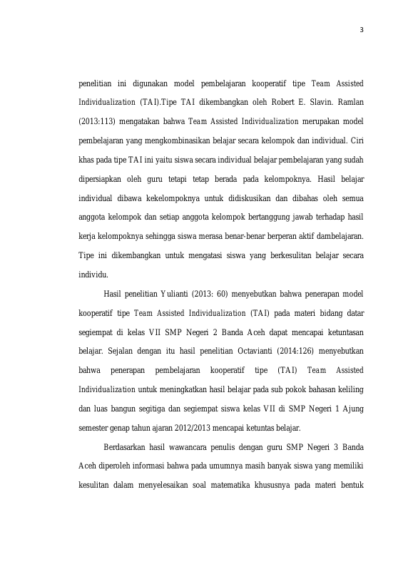 Baca Juga : PENERAPAN MODEL PEMBELAJARAN KOOPERATIF TIPE TAI PADA MATERI BENTUK ALJABAR DI KELAS VII SMP NEGERI 3 BANDA ACEH (Ria Purnama Sari, 2018)