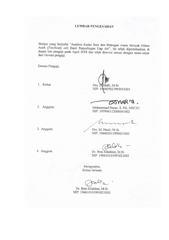 Baca Juga : ANALISIS KADAR BESI DAN BILANGAN ASAM MINYAK NILAM ACEH (PATCHOULI OIL) HASIL PENYULINGAN UAP AIR (Miftahul Jannah, 2018)