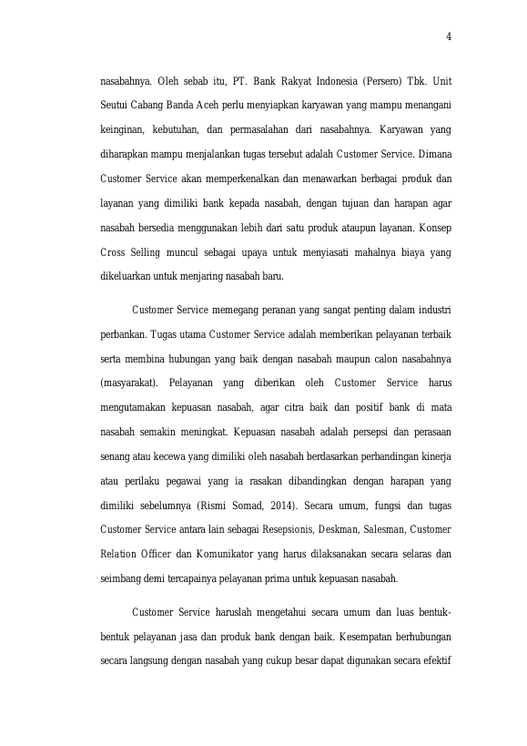 MIKA PARAMIDA SIAGIAN, PERAN CUSTOMER SERVICE DALAM MELAKUKAN CROSS SELLING PADA PT. BANK RAKYAT INDONESIA (PERSERO) TBK. UNIT SEUTUI CABANG BANDA ACEH. Banda Aceh Universitas Syiah Kuala,2018