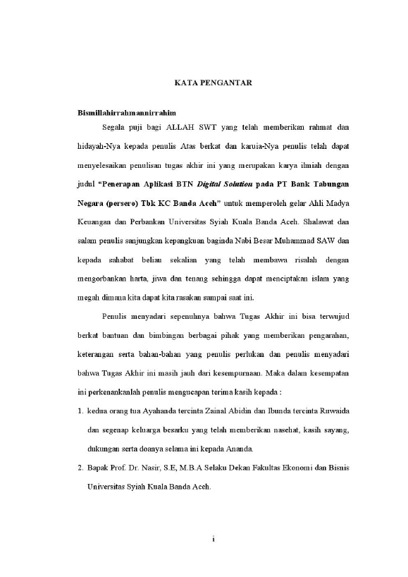 RAUDHATUL JANNAH, PENERAPAN APLIKASI BTN DIGITAL SOLUTION PADA PT. BANK TABUNGAN NEGARA (PERSERO) TBK. KC BANDA ACEH. Banda Aceh Universitas Syiah Kuala,2018