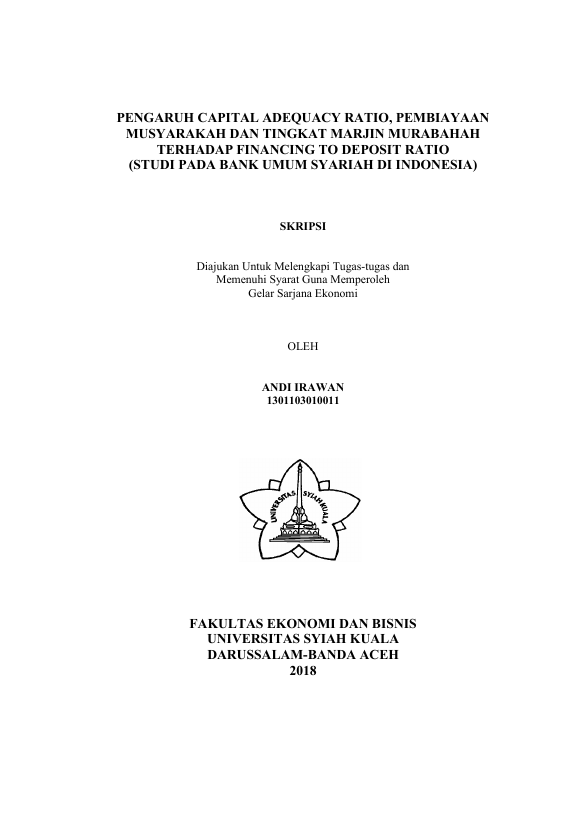 Baca Juga : PENGARUH CAPITAL ADEQUACY RATIO, PEMBIAYAAN MUSYARAKAH DAN TINGKAT MARJIN MURABAHAH TERHADAP FINANCING TO DEPOSIT RATIO (STUDI PADA BANK UMUM SYARIAH DI INDONESIA) (Andi Irawan, 2018)