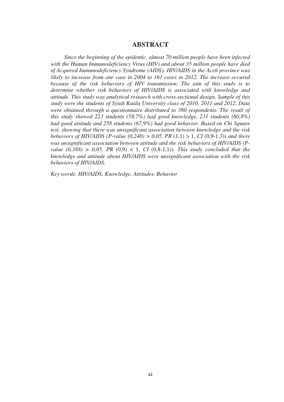 Baca Juga : HUBUNGAN PENGETAHUAN DENGAN SIKAP TENTANG PENYAKIT HIV/AIDS PADA SISWA SMA LAB. SCHOOL UNIVERSITAS SYIAH KUALA (Siska Rahmi, 2018)