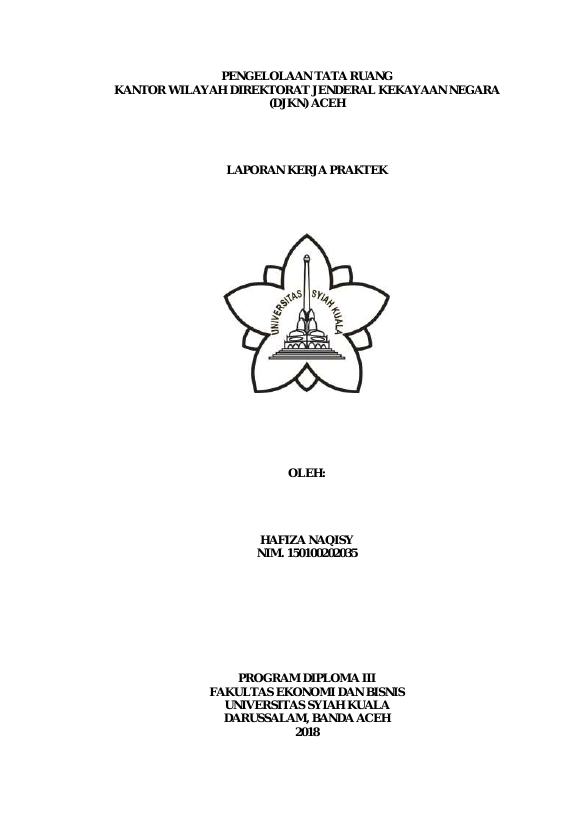 HAFIZA NAQISY, PENGELOLAAN TATA RUANG KANTOR WILAYAH DIREKTORAT JENDERAL KEKAYAAN NEGARA (DJKN) ACEH. Banda Aceh Universitas Syiah Kuala,2018