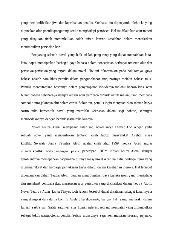 Herman, ANALISIS GAYA IRONI DALAM NOVEL TEUNTRA ATOM KARYA THAYEB LOH ANGEN. Banda Aceh Universitas Syiah Kuala,2018