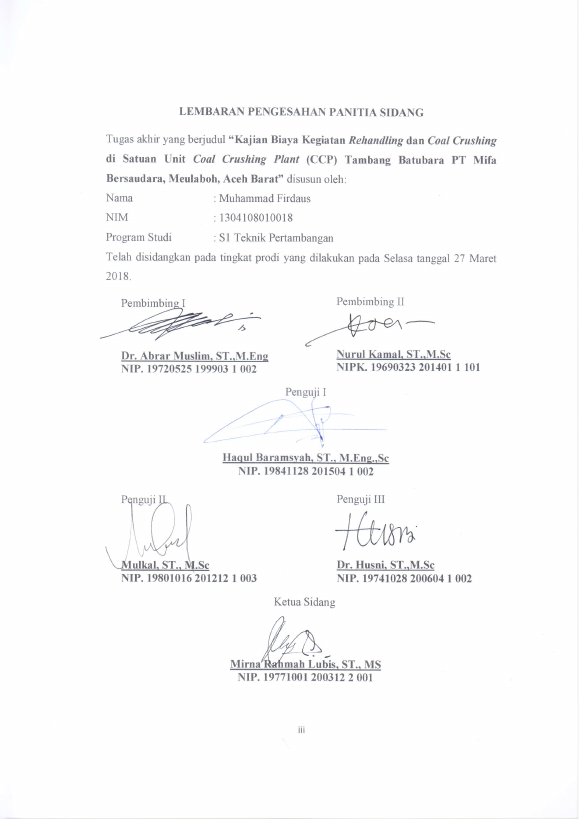 Baca Juga : KAJIAN BIAYA KEGIATAN REHANDLING DAN COAL CRUSHING DI SATUAN UNIT COAL CRUSHING PLANT (CCP) TAMBANG BATUBARA PT MIFA BERSAUDARA, MEULABOH, ACEH BARAT (Muhammad Firdaus, 2018)
